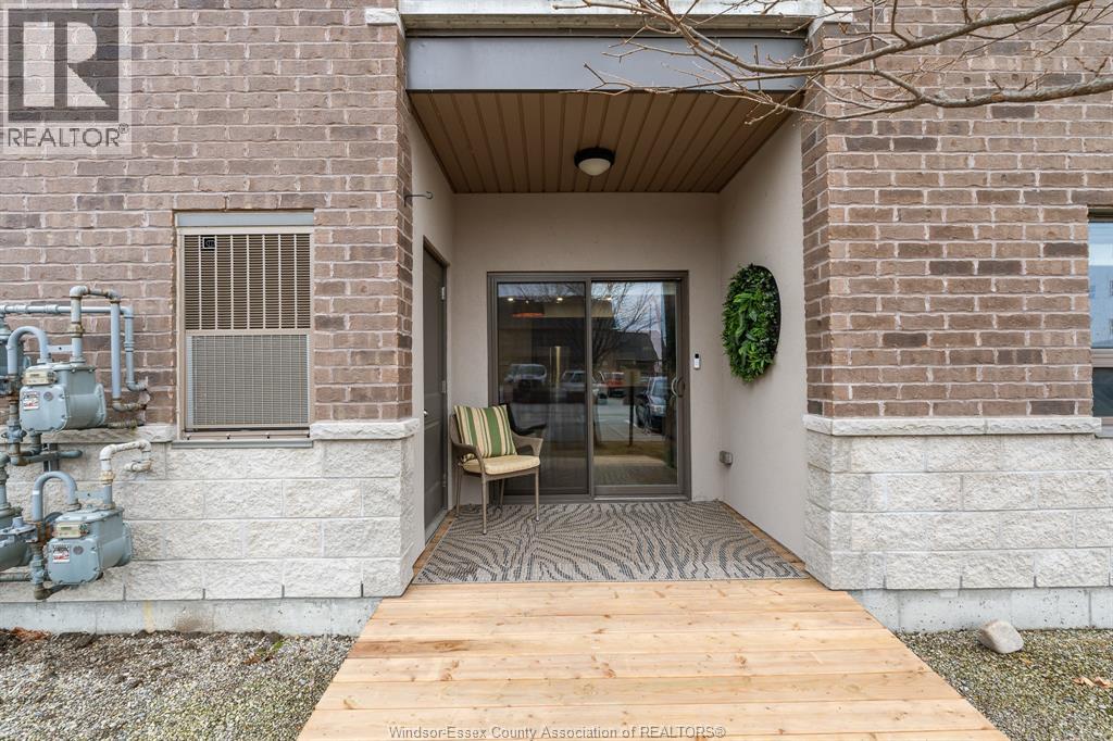 This beautifully renovated main-floor condo delivers refined living with exceptional attention to detail throughout, set in a highly desirable area of Windsor’s east end. Offering 2 spacious bedrooms and 2 elegant baths, including a stunning updated en suite, every inch of this home has been thoughtfully elevated. The designer kitchen features premium appliances, upgraded lighting and sleek finishes that set the tone for the entire space. Enjoy the convenience of a walk-out patio with an added ramp—ideal for mobility needs or effortless grocery and vehicle access. This 10-year-young building has been fully modernized, while this suite stands apart with upgrades including new flooring throughout, upgraded vanities and faucets, stylish light fixtures and pot lights, custom window treatments, tankless hot water tank, and a laundry tub with upgraded faucet. A rare offering of luxury, comfort and convenience in one of the building’s finest residences. (id:4555)